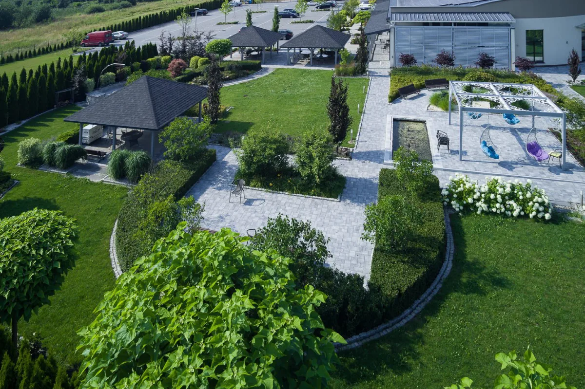 Budynek składa się z parteru obejmującego salę bankietową, zaplecze kuchenne i recepcję. Na piętrze zlokalizowane są pokoje hotelowe.