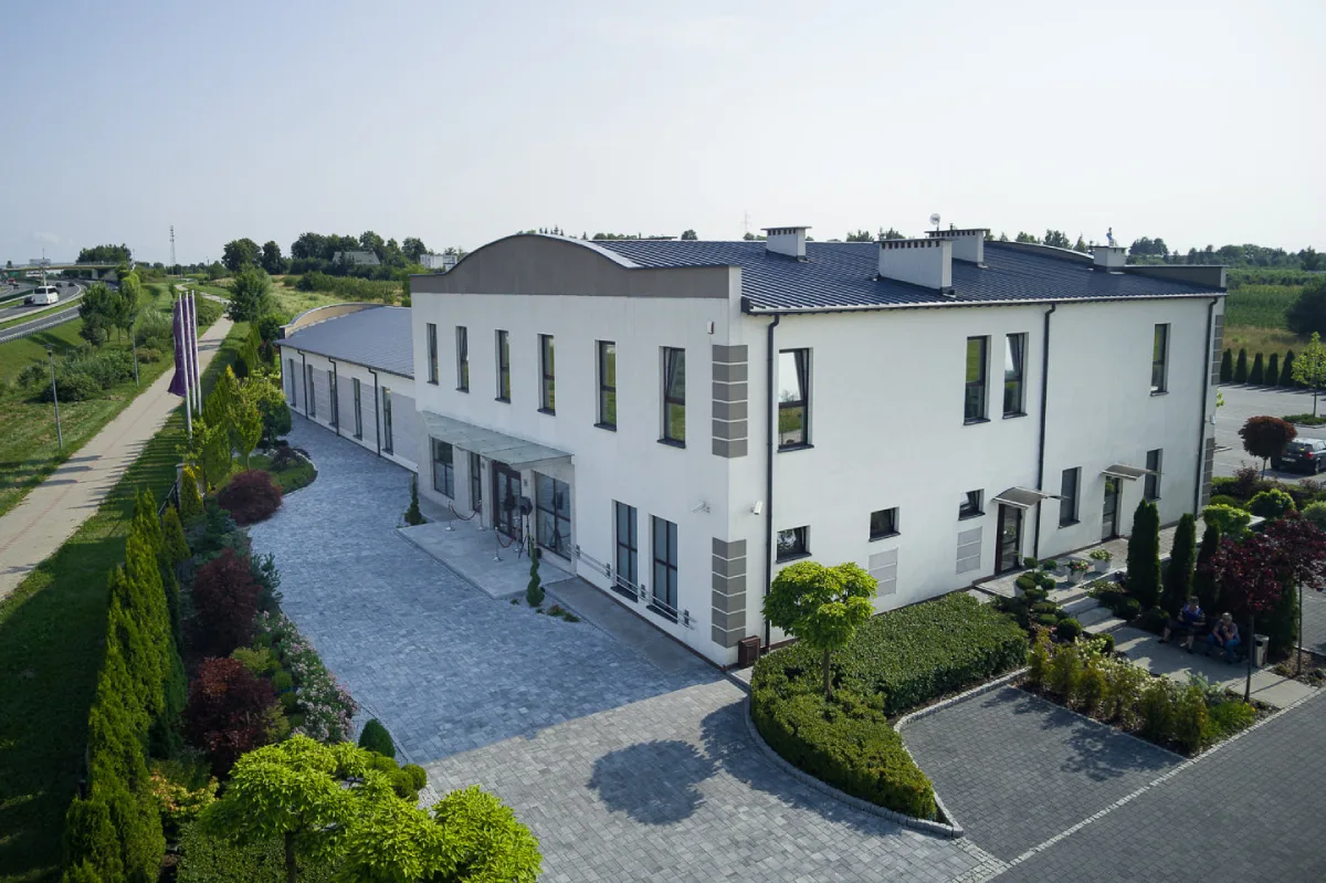 Pierwotny projekt obejmował salon sprzedaży samochodów. Po latach inwestor postanowił zmienić sposób użytkowania obiektu na salę bankietową. Obydwa opracowania realizowane w ramach naszej jednostki projektowej.